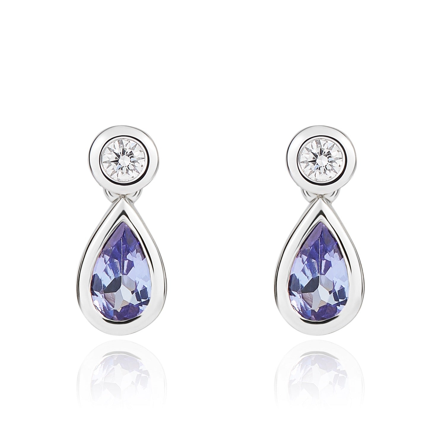 These 18ct white gold earrings are set with a pair of stunning pear-shaped tanzanites and sparkling diamonds. The secure rubover setting protect the gems, making them perfect for everyday wear. The combination of alluring tanzanite and gorgeous diamonds make these earrings a truly eye-catching piece.