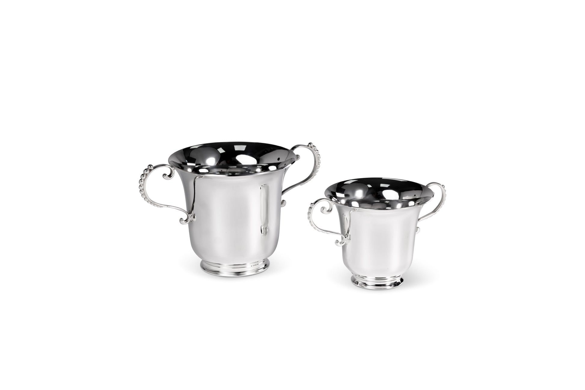 Our Silver Guernsey Loving Cups are timeless heirloom gifts, perfect for marking special occasions such as a christening. These classic cups are crafted with intricate detail and come in two sizes - large (7cm x 8cm) and small (5.5cm x 6.5cm). Make sure to pass on the gift of love with one of these iconic pieces.