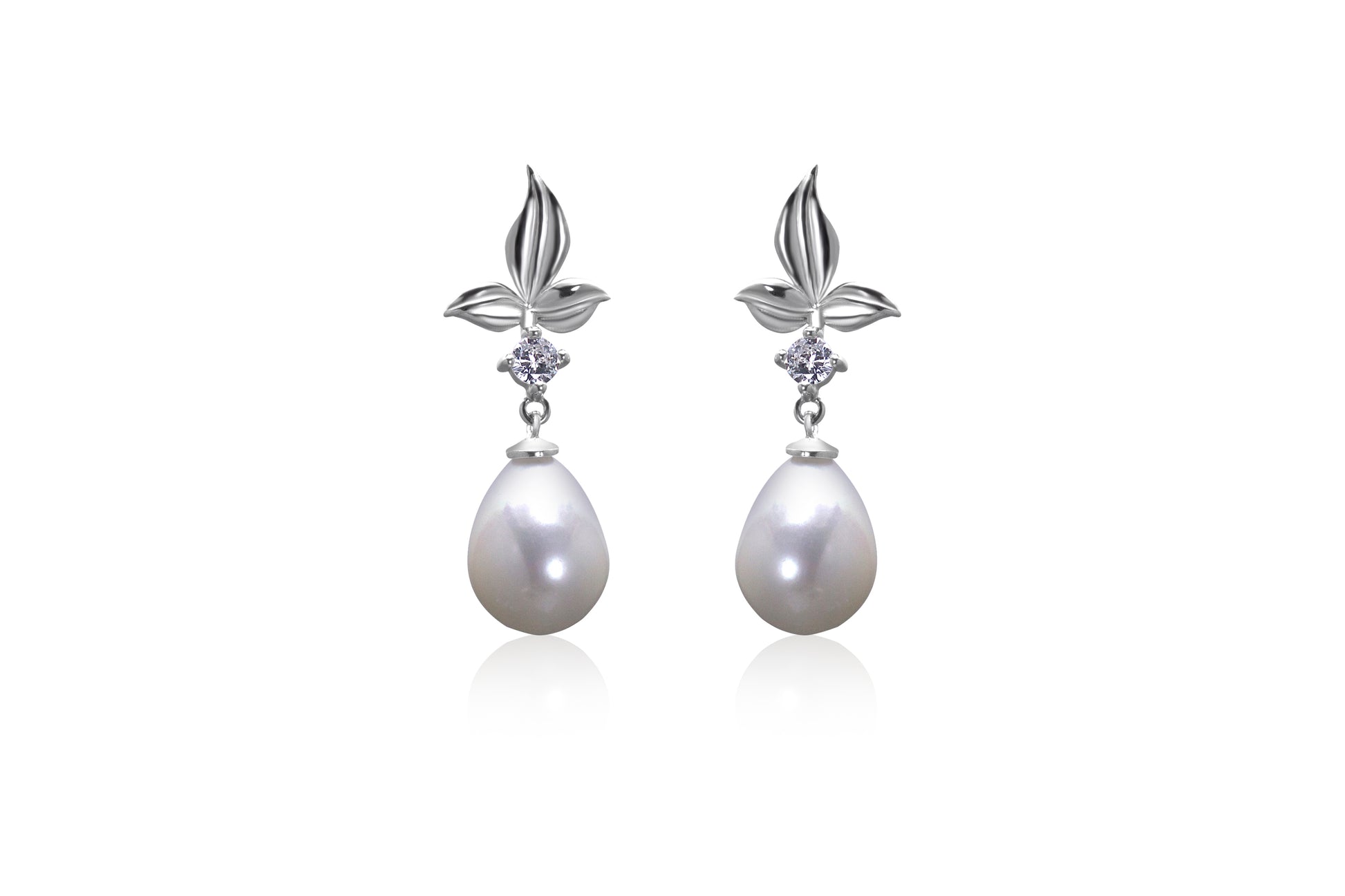 silver cz and pearl earrings.