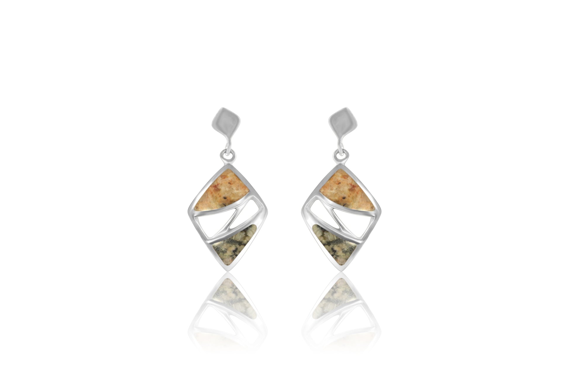 Sterling silver two tone Guernsey granite diamond drop earrings.
