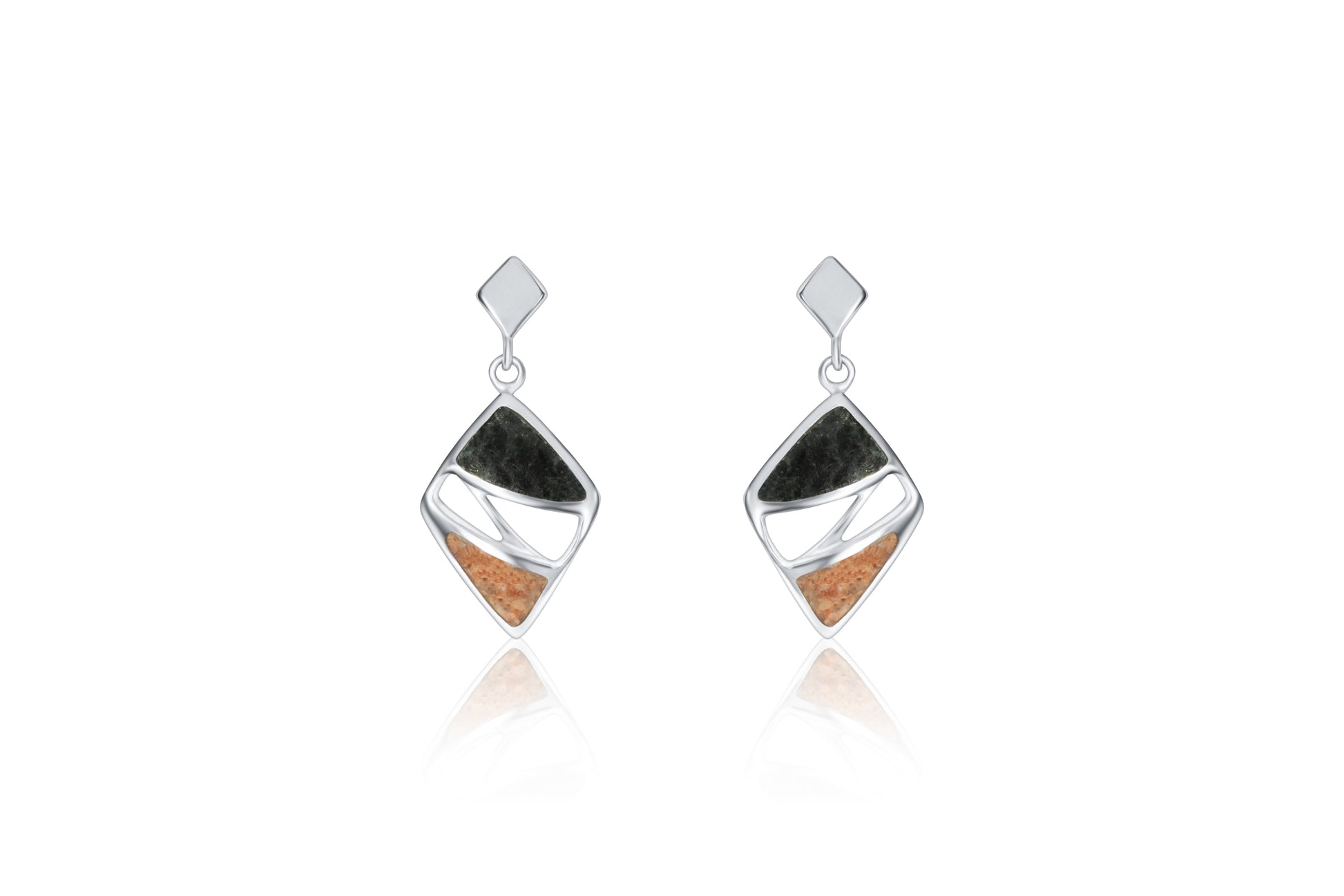 Sterling silver two tone Guernsey granite diamond drop earrings.