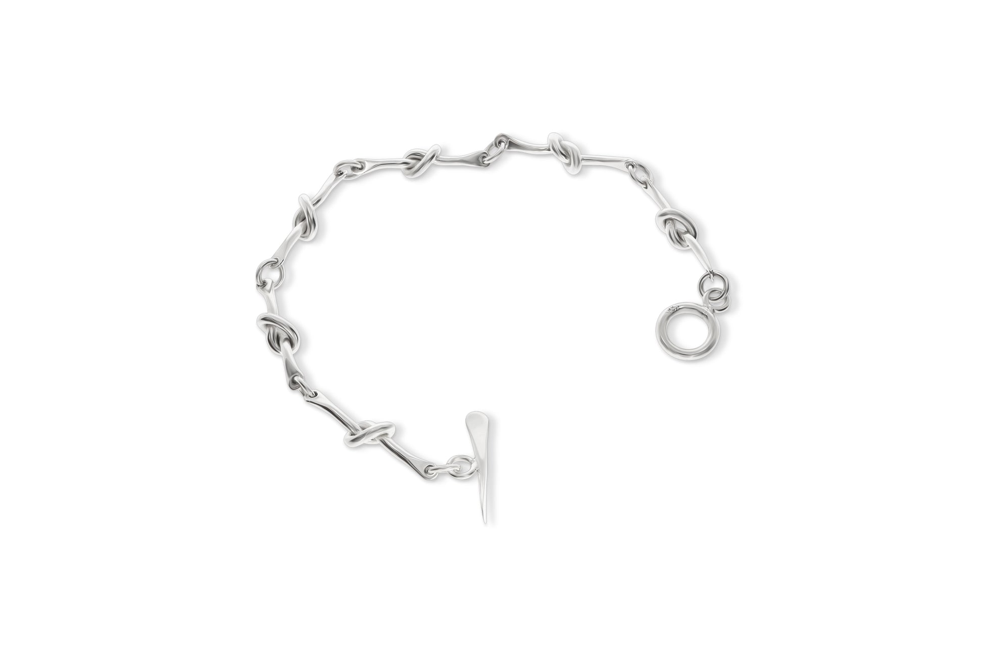 This bracelet has been expertly crafted from sterling silver and is designed to make a lasting impression. Offering a unique T-bar fastening, the bracelet features a modern knot detail for a contemporary look.