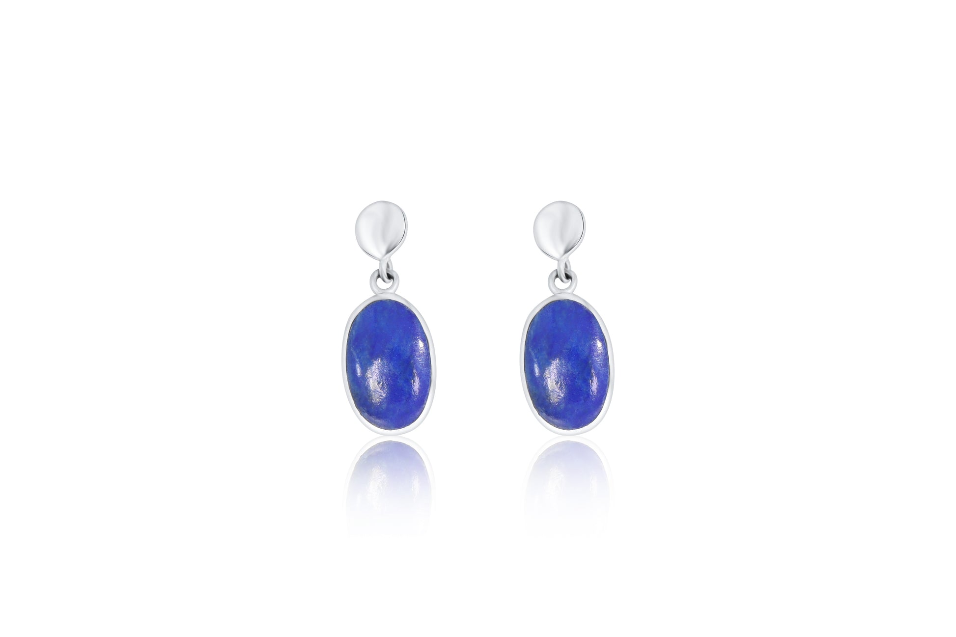 These polished sterling silver earrings feature luxurious blue lapis ovals for a subtle, sophisticated look. The combination of silver and lapis is sure to be an eye-catching addition to any outfit.