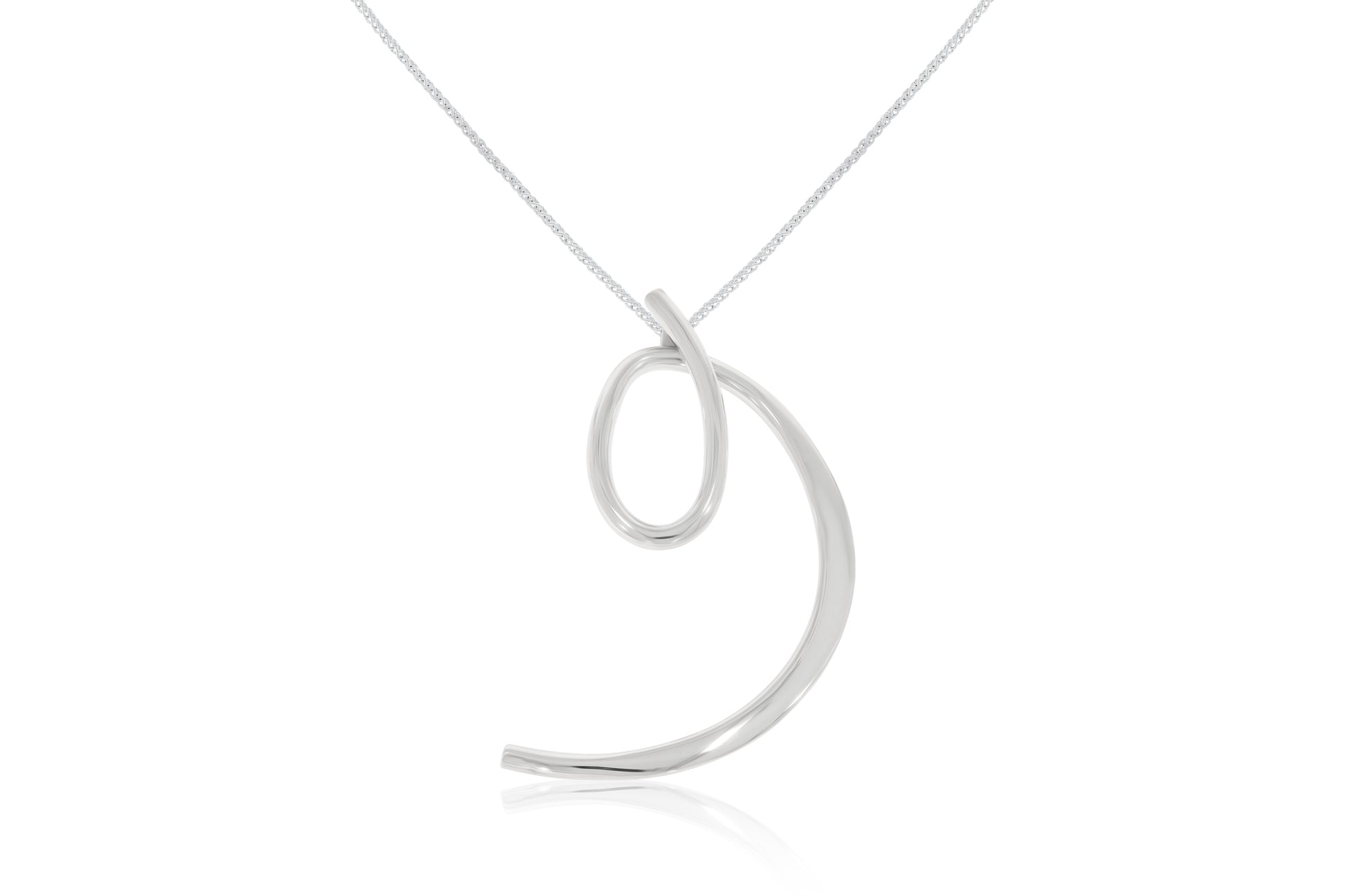 This sterling silver loop pendant is a beautiful and elegant addition to any collection. Featuring a classic long loop and tail design, the pendant measures 67 x 29mm. Chain not included.